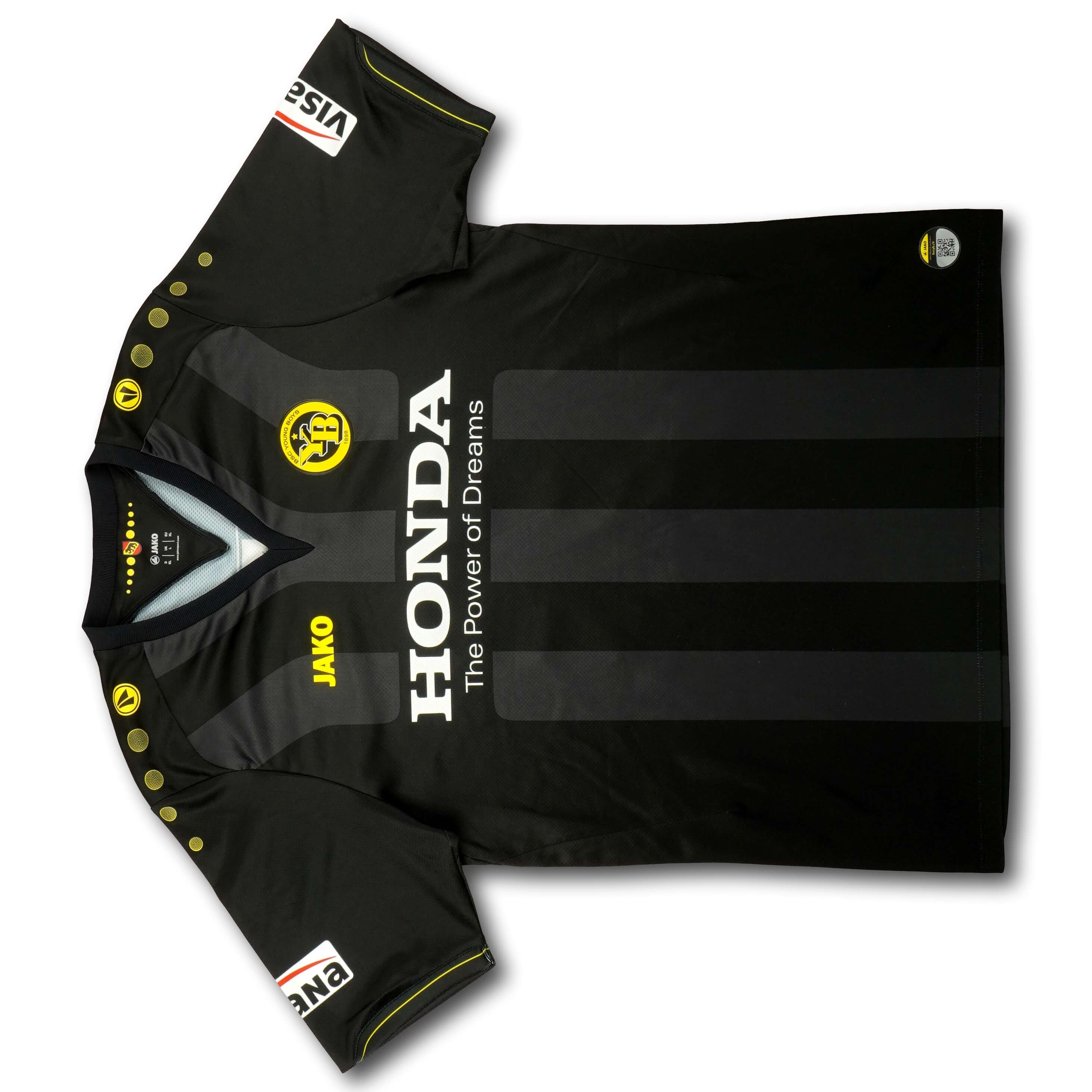 Das Produkt wurde von Jako hergestellt, ist schwarz/gelb und vom Typ "Auswärts" aus der Saison 2014-15 in Grösse XL.