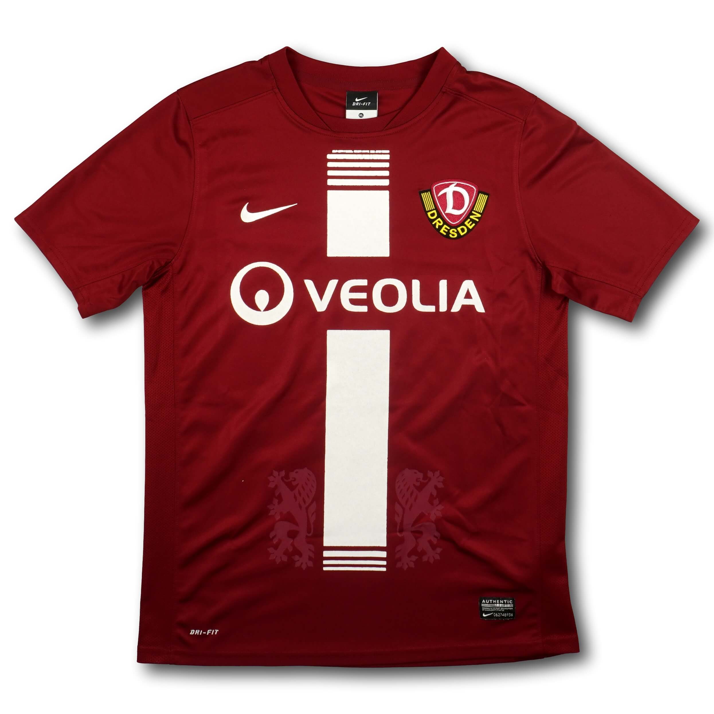 Dieses Dynamo Dresden Auswärtstrikot aus der Saison 2012-13 mit Kindergrösse XL passt Erwachsenen mit Grösse S - die Brustbreite beträgt 47cm und die Körperlänge 64cm.